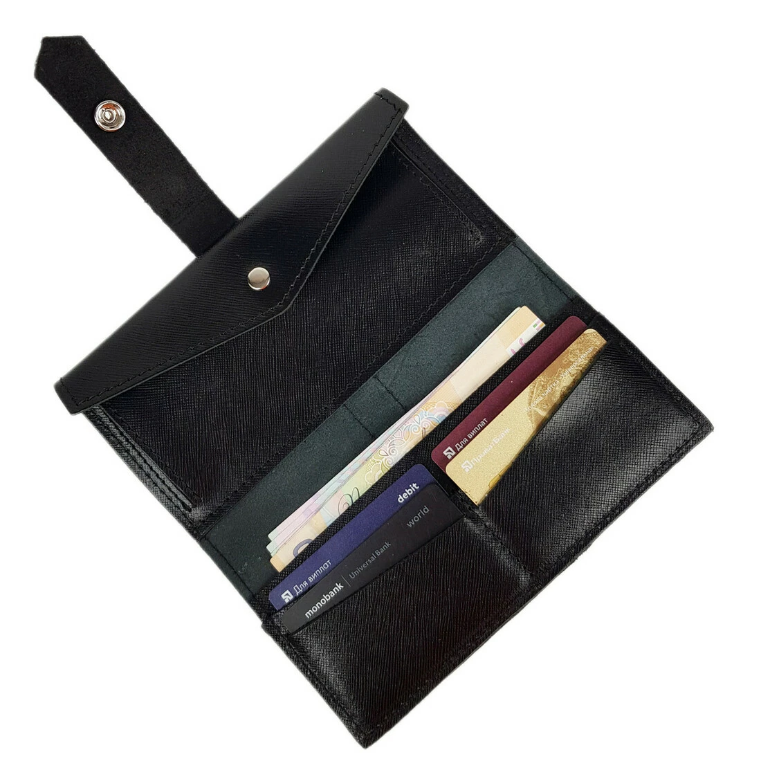 для купюр, отделения для карт и отделение для мелочи на кнопке.