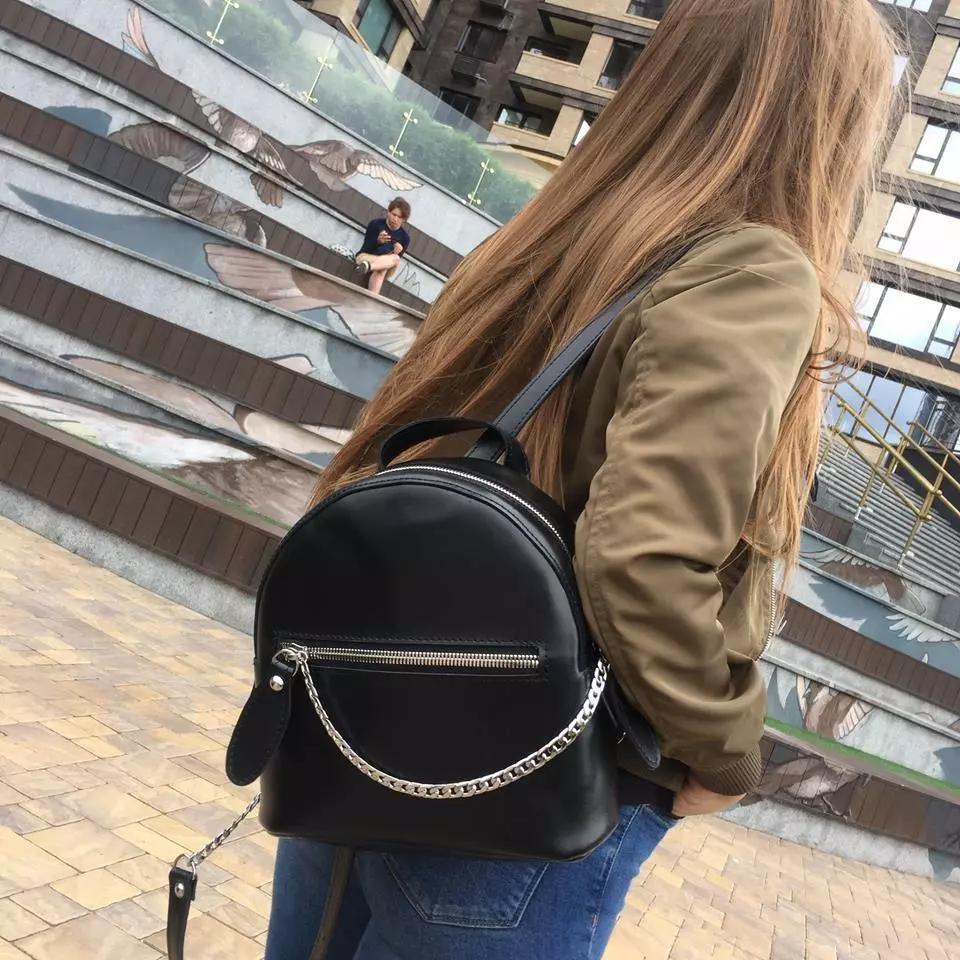 Невероятно удобный рюкзак из качественной натуральной кожи. Отлично держит форму и очень вместительный. Цепочка придает рюкзачку оригинальность.Имеет одно большое отделение, внутри на подкладке.