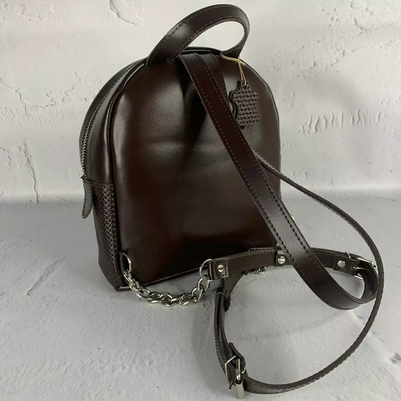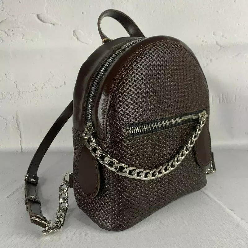 Невероятно удобный рюкзак из качественной натуральной кожи. Отлично держит форму и очень вместительный.Цепочка придает рюкзачку оригинальность.Имеет одно большое отделение, внутри на подкладке.