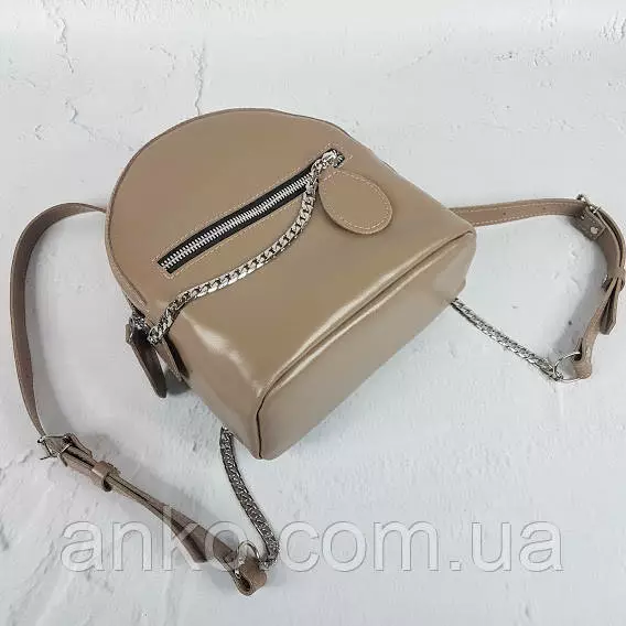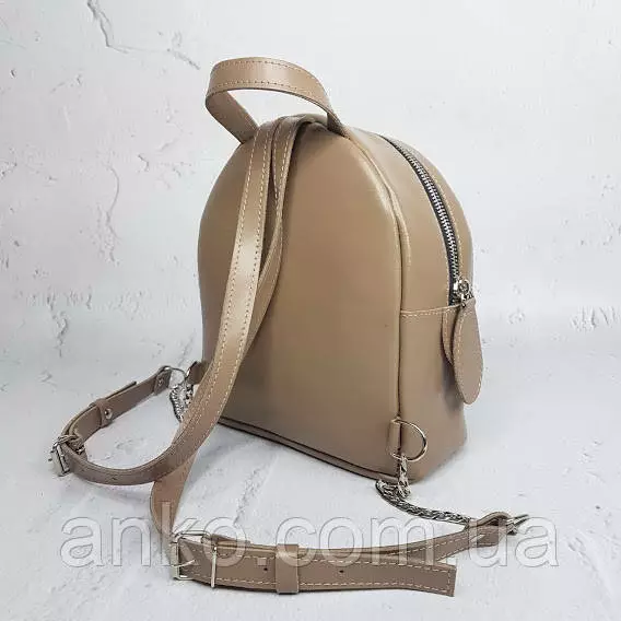 Невероятно удобный рюкзак из качественной натуральной кожи. Отлично держит форму и очень вместительный. Цепочка придает рюкзачку оригинальность. Имеет одно большое отделение, внутри рюкзака есть открытый карман.