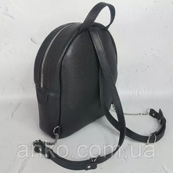 Невероятно удобный рюкзак из качественной натуральной кожи. Отлично держит форму и очень вместительный. Цепочка придает рюкзачку оригинальность. Имеет одно большое отделение, внутри есть открытый карман.