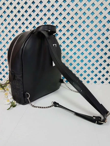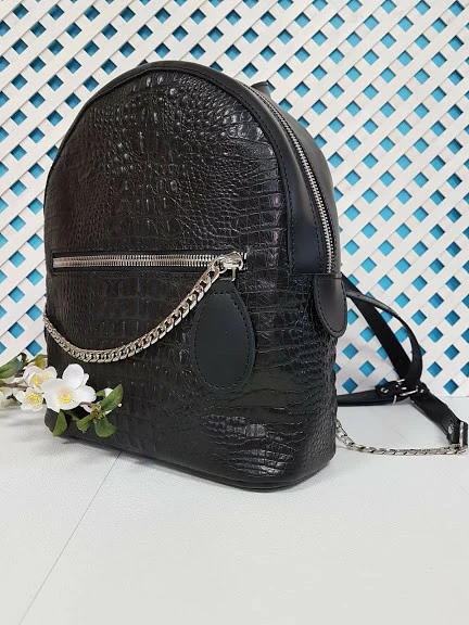 Рюкзак "Шайн-плюс" натуральная кожа, черная матовая с тиснением под крокодила