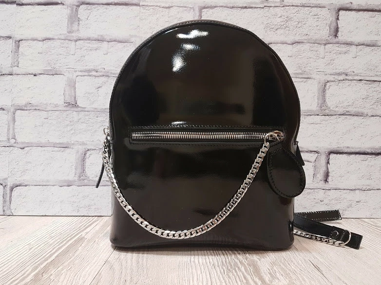 Невероятно удобный рюкзак из качественной натуральной кожи. Отлично держит форму и очень вместительный. Цепочка придает рюкзачку оригинальность. Имеет одно большое отделение, внутри на подкладке.