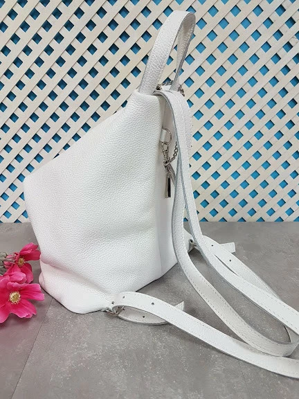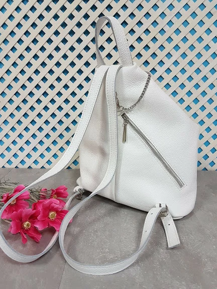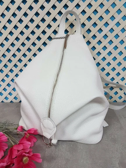 Рюкзак женский "Парис" натуральная кожа, белый флотар
