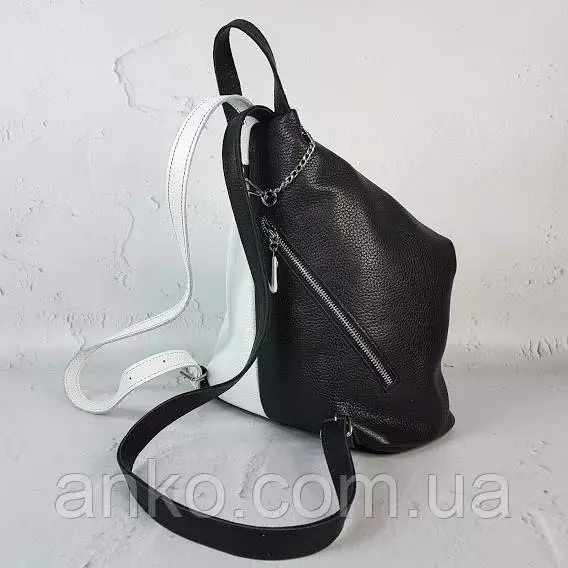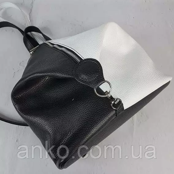 Рюкзак женский "Парис" натуральная кожа, черная/белая флотар