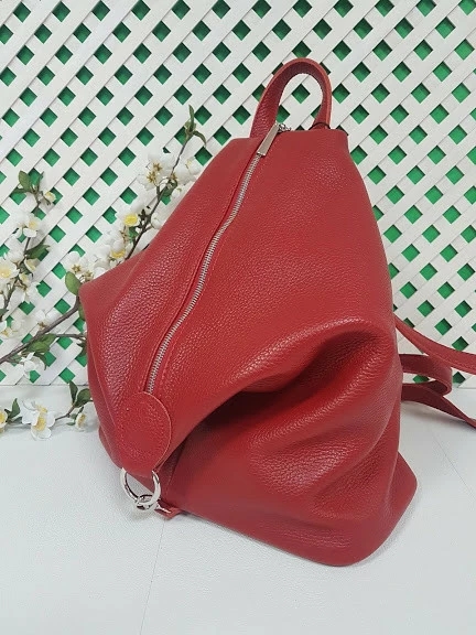 Рюкзак женский "Парис" натуральная кожа, красный флотар