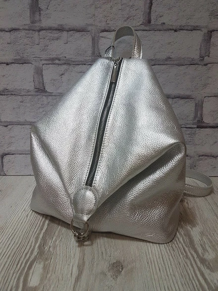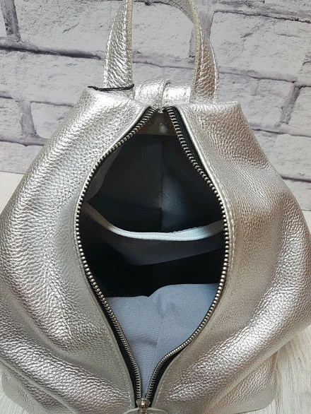 Рюкзак женский "Парис" натуральная кожа, серебряный флотар