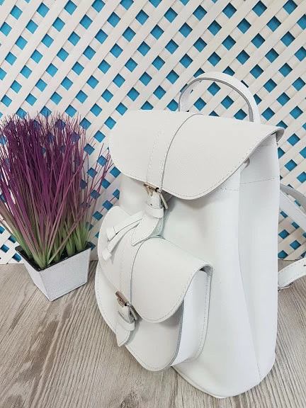 Рюкзак женский "ВОЯЖ" натуральная кожа, белая матовая