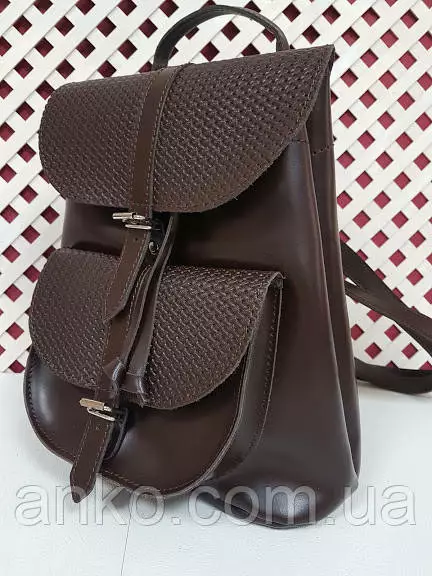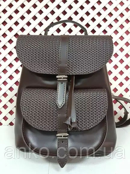 Рюкзак женский "ВОЯЖ" натуральная кожа, темно-коричневая матовая с плетенкой