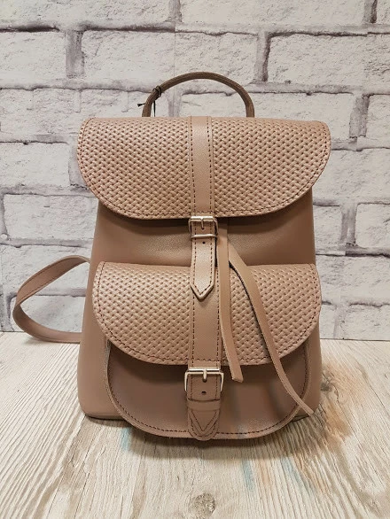 Рюкзак женский "ВОЯЖ" натуральная кожа,латте матовая с плетенкой
