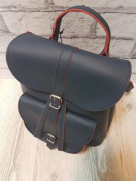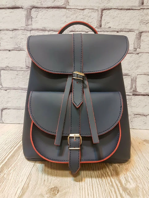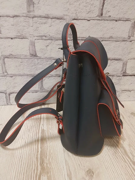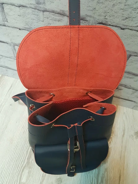Рюкзак женский "ВОЯЖ" натуральная кожа, синий с красной изнанкой