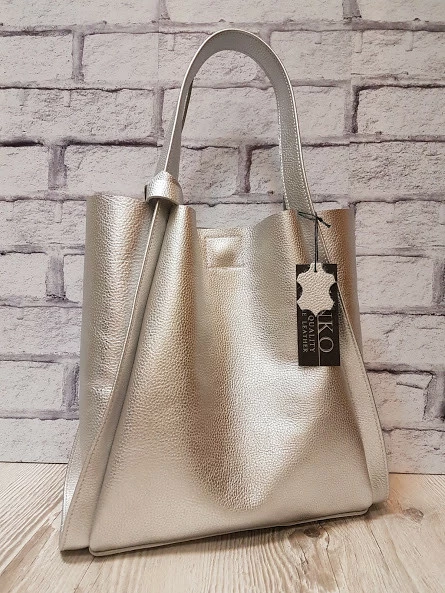 Сумка "ДОЛЬЧЕ" натуральная кожа, серебряный флотар