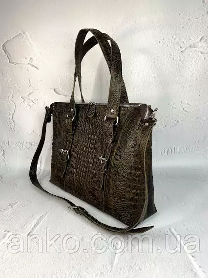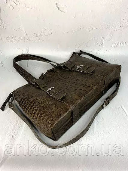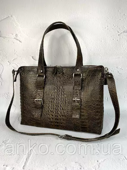 Сумка "Монако" натуральная кожа, коричневая под крокодила