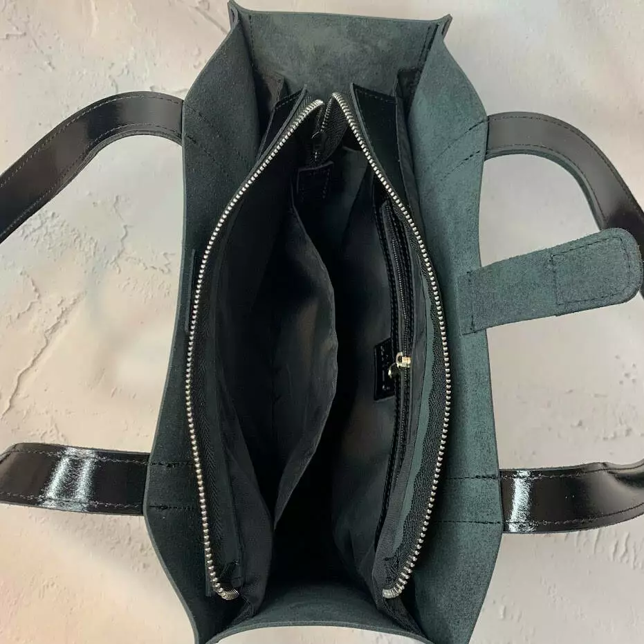 Вместительная сумка из натуральной кожи, внутри есть основное отделение с открытым карманом, которое закрывается на молнию. По бокам основного отделения, имеются два открытых кармана.