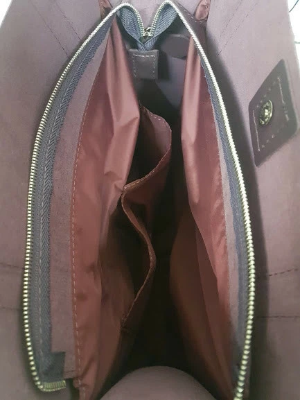 Вместительная сумка из натуральной кожи, внутри есть основное отделение с открытым карманом, которое закрывается на молнию. По бокам основного отделения, имеются два открытых кармана.