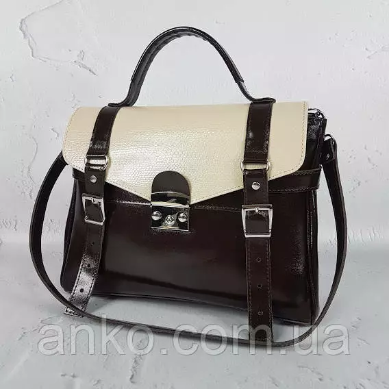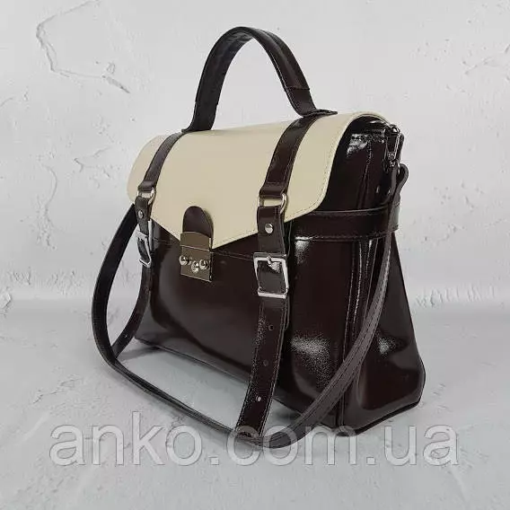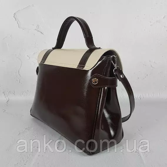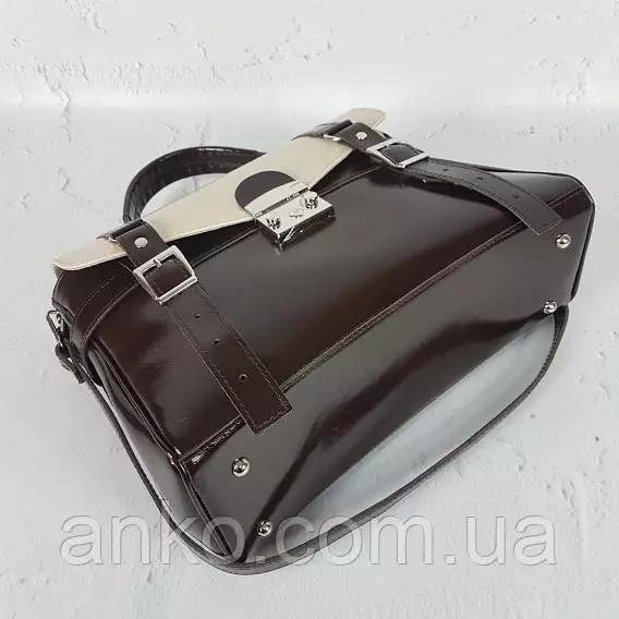 Сумка-саквояж женская "Винтаж" натуральная кожа, шоколадная глянец / слоновая кость рептилия