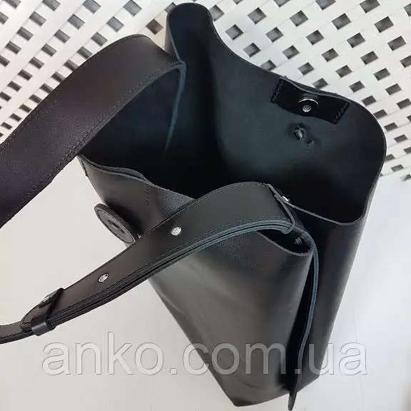 Вместительная сумка из натуральной кожи, внутри специальное отделение - футляр с карманом на молнии, которое крепится к сумке с помощью кожаного ремешка. Застегивается на декоративную пуговицу. Длина ремня регулируется.