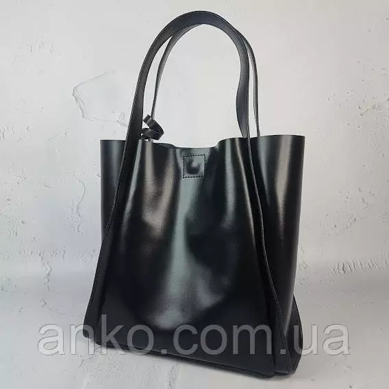 Сумка-шоппер "Дольче" натуральная кожа, черная матовая