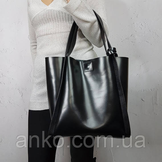 Сумка-шоппер "Дольче" натуральная кожа, черная с тиснением под рептилию