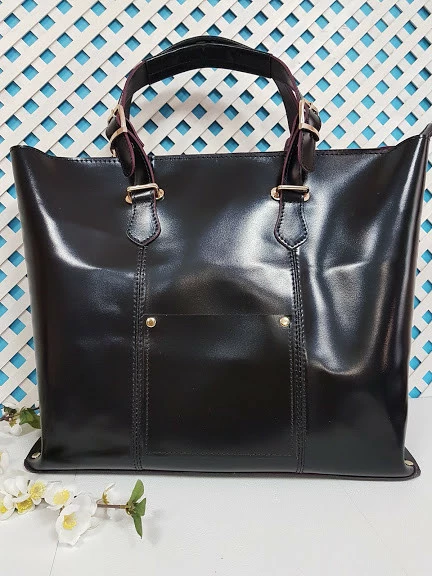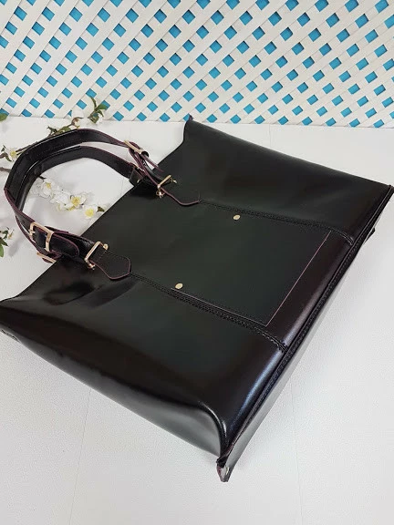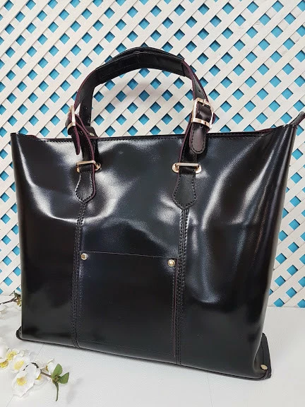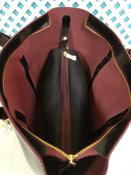 Сумка-шоппер "ЭЛИС" натуральная кожа, черная полуматовая с бургунди изнанкой, на молнии