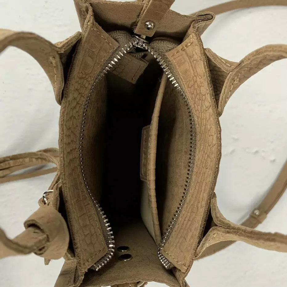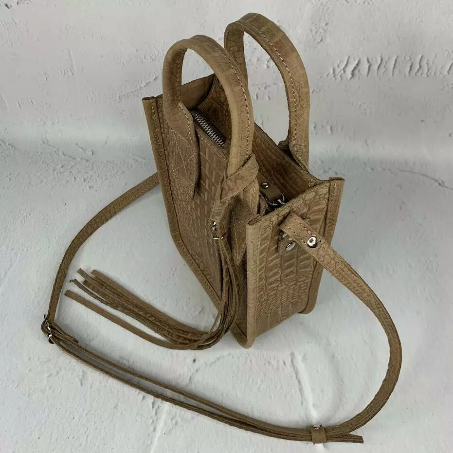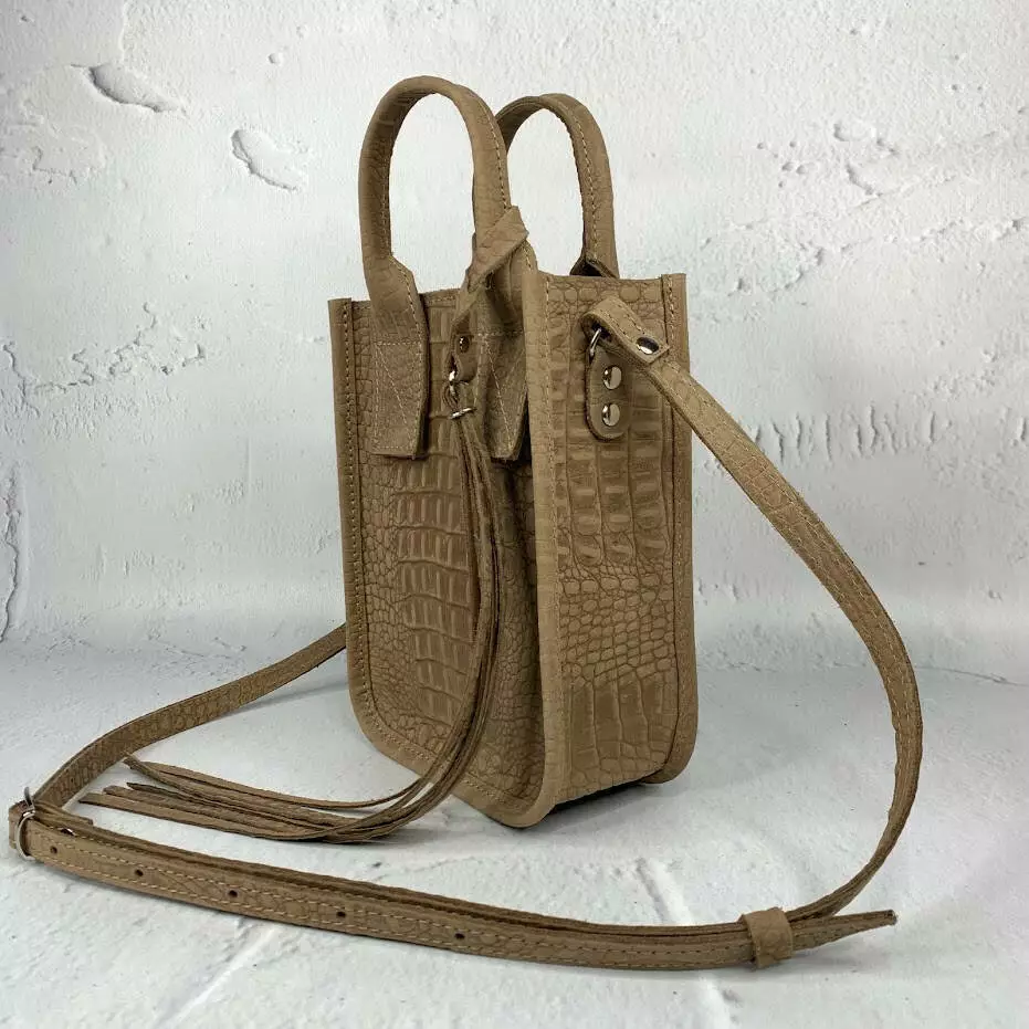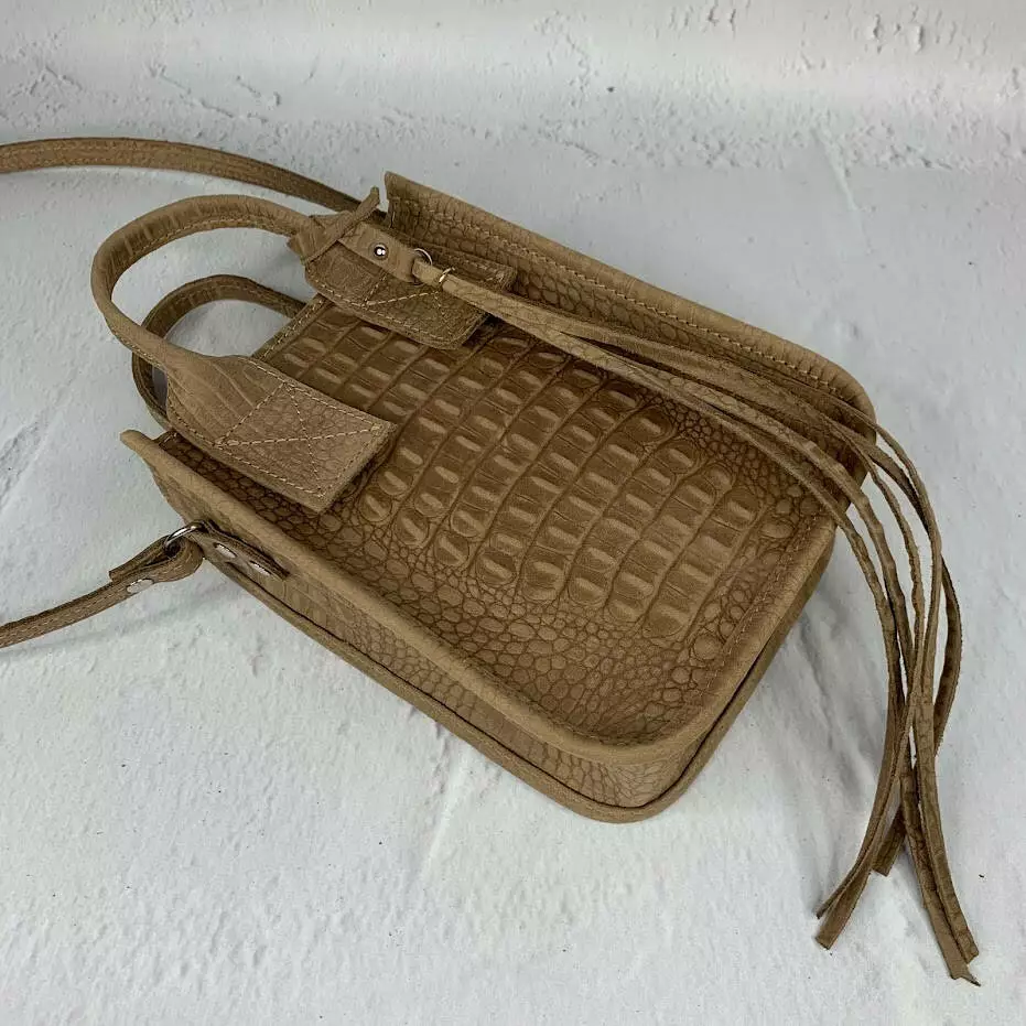 Сумка женская "Амели"" натуральная кожа, бежевая под крокодила