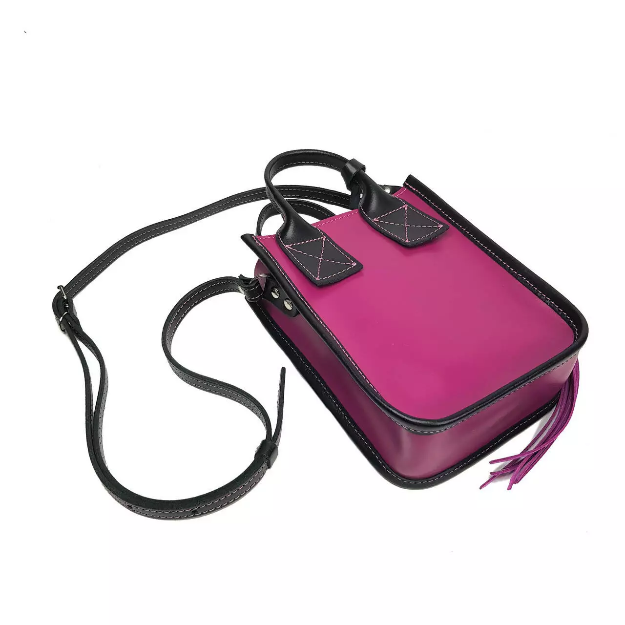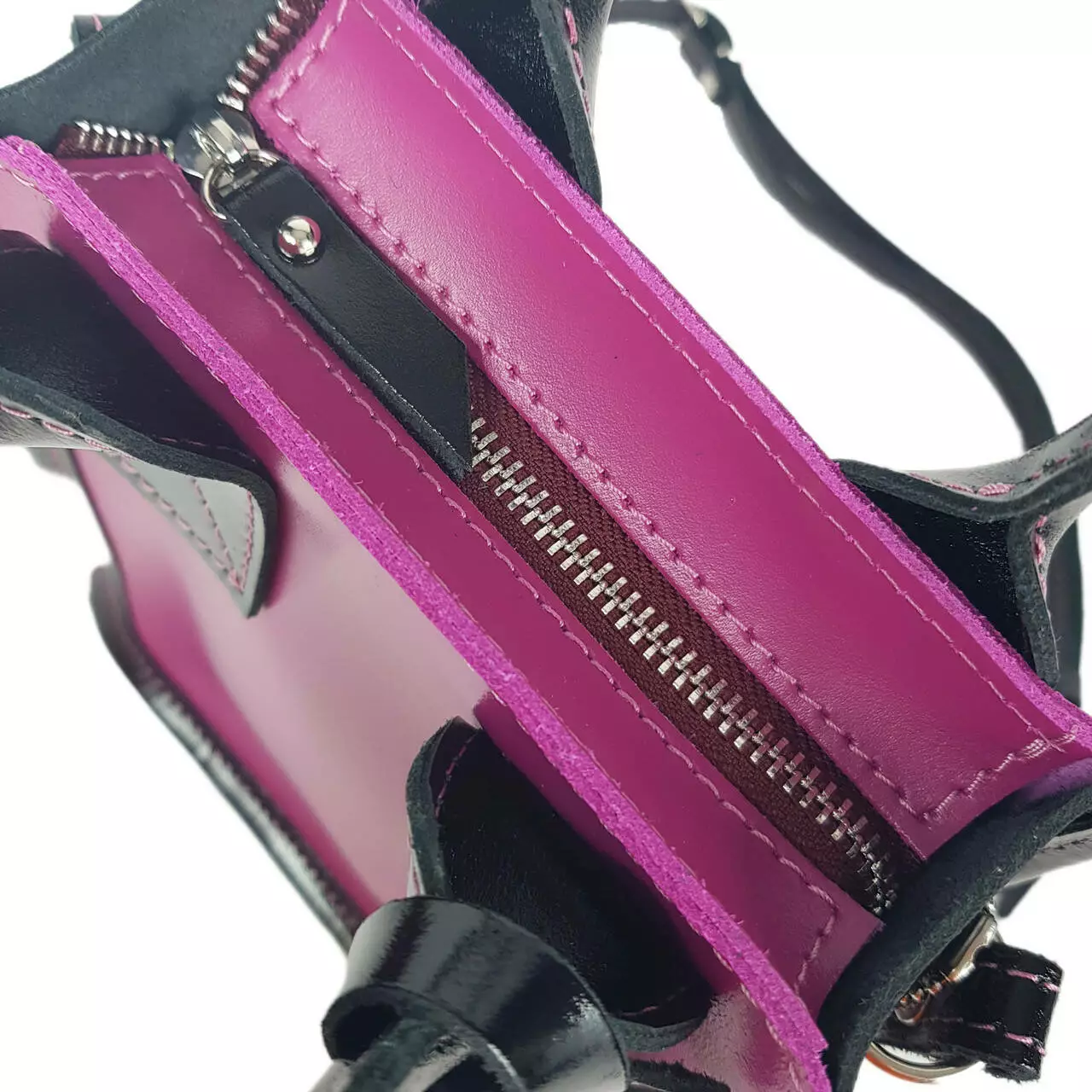 Сумка женская "Амели"" натуральная кожа, фуксия / черная