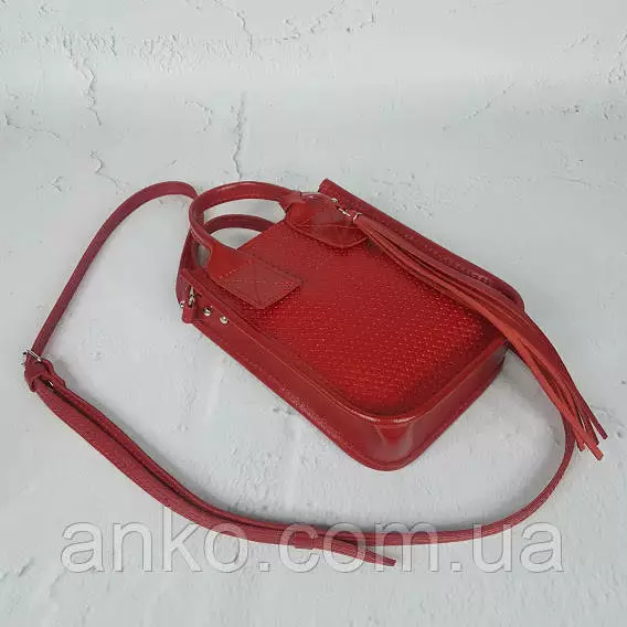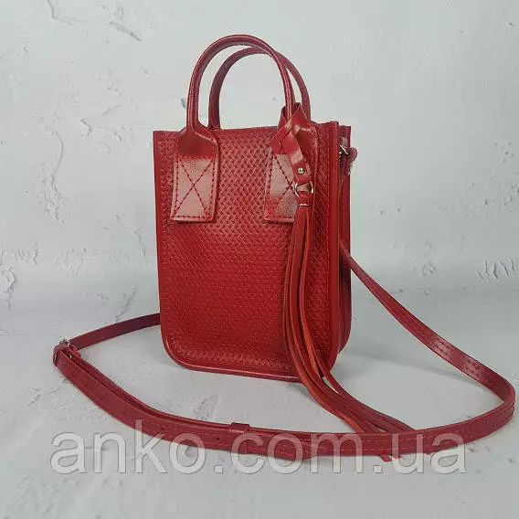 Сумка женская "Амели"" натуральная кожа, красная с тиснением под плетенку