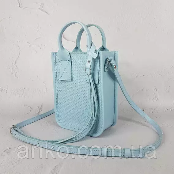 Сумка женская "Амели"" натуральная кожа, небесно-голубая с тиснением плетенка