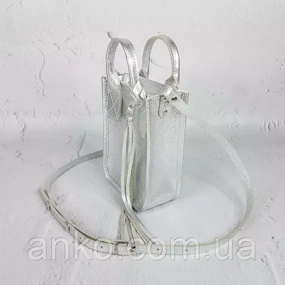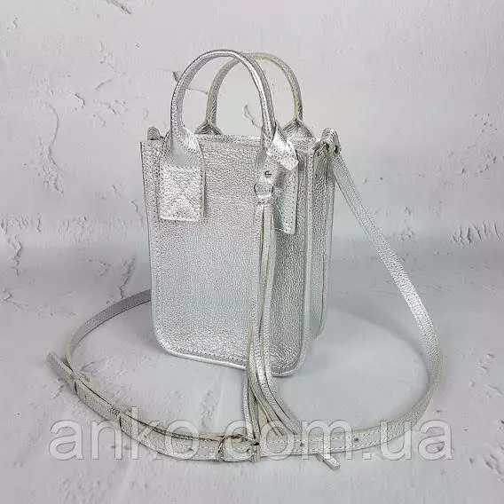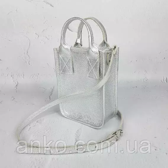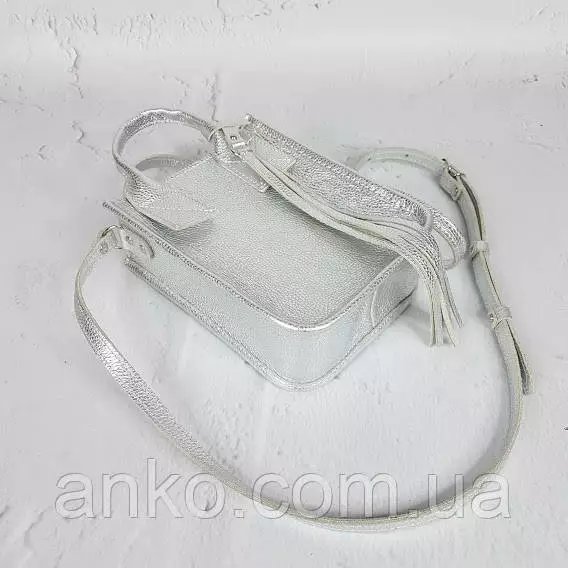 Сумка женская "Амели"" натуральная кожа, серебряный флотар
