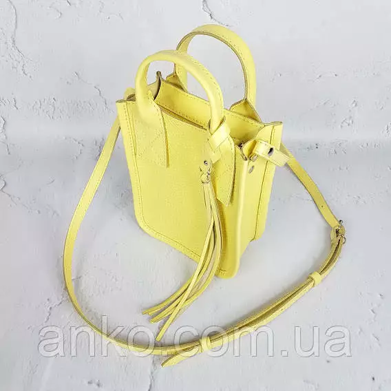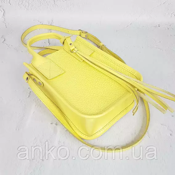 Сумка женская "Амели"" натуральная кожа, желтая с тиснением жемчуг