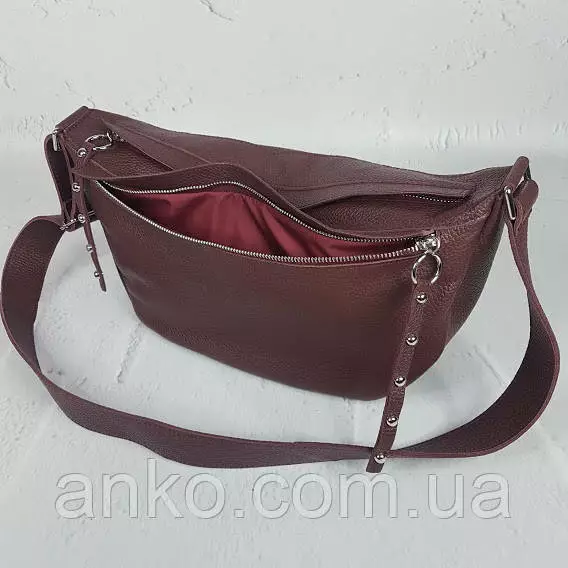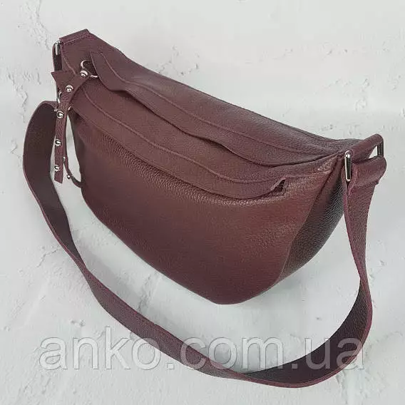 Сумка женская бананка "Джой" натуральная кожа, бургунди флотар