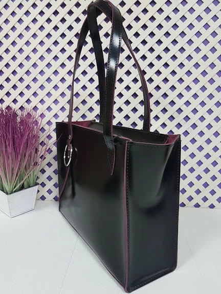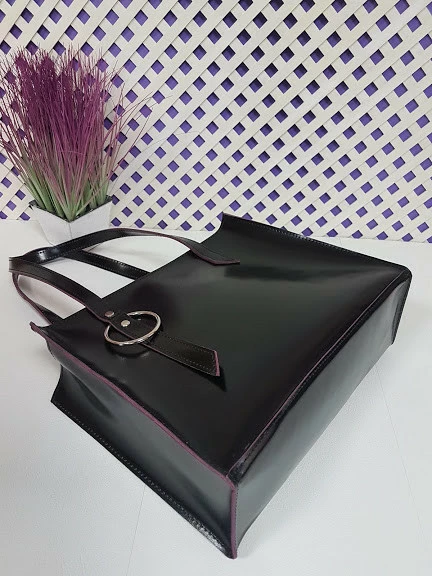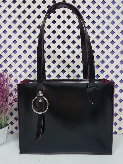 Сумка женская "Беата" натуральная кожа, черная полуматовая с бургунди изнанкой