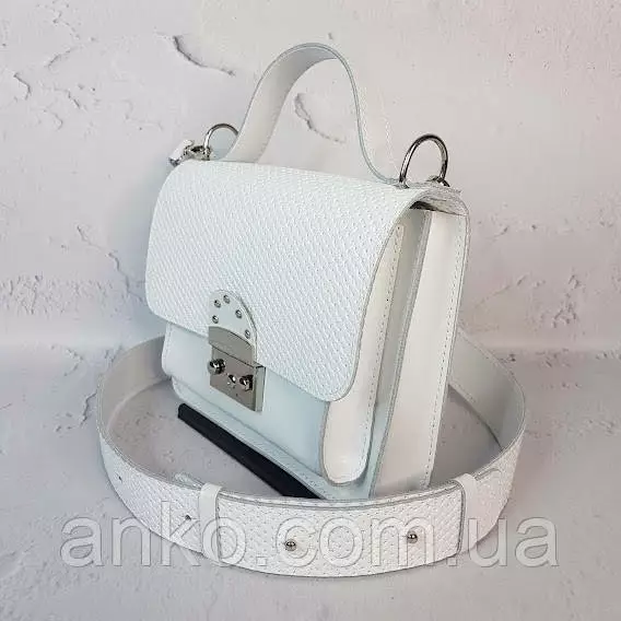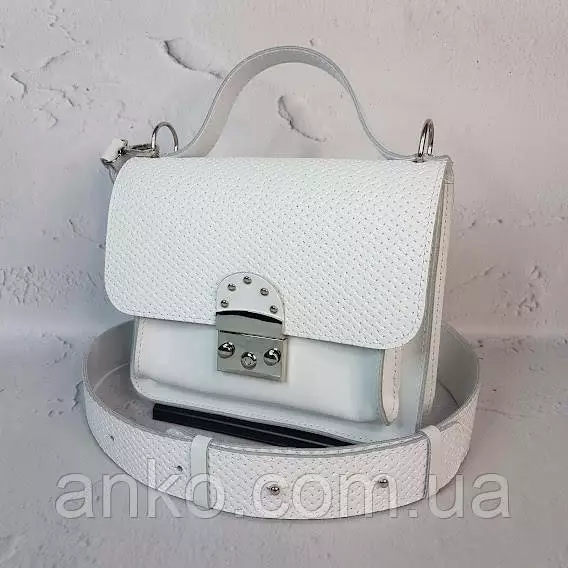 Сумка женская "Бианка" натуральная кожа, белая матовая тиснение под плетенку