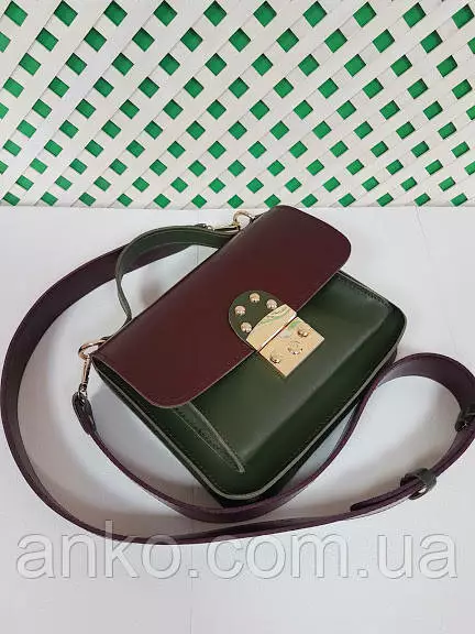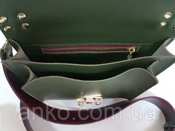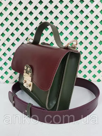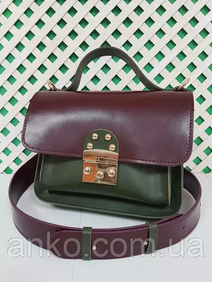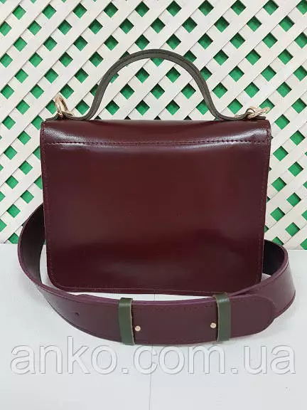 Сумка женская "Бианка" натуральная кожа, бургунди и хаки матовая