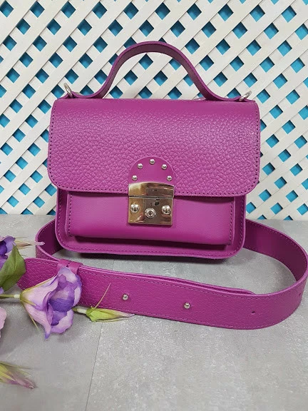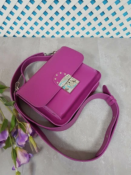 Сумка женская "Бианка" натуральная кожа, фуксия "Жемчуг"