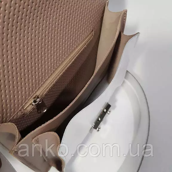 Сумка женская "Бианка" натуральная кожа, латте - белая комбинированная