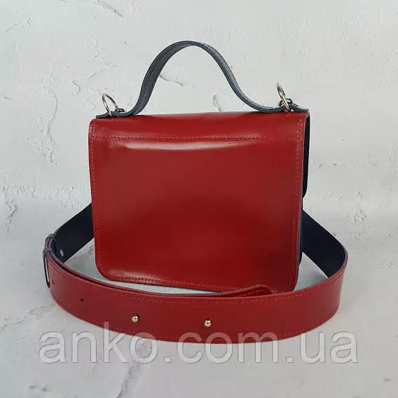 Сумка женская "Бианка" натуральная кожа, синяя / красная