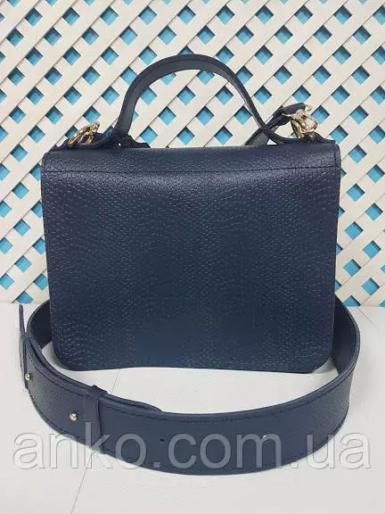 Сумка женская "Бианка" натуральная кожа, синяя матовая клапан под рептилию