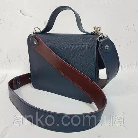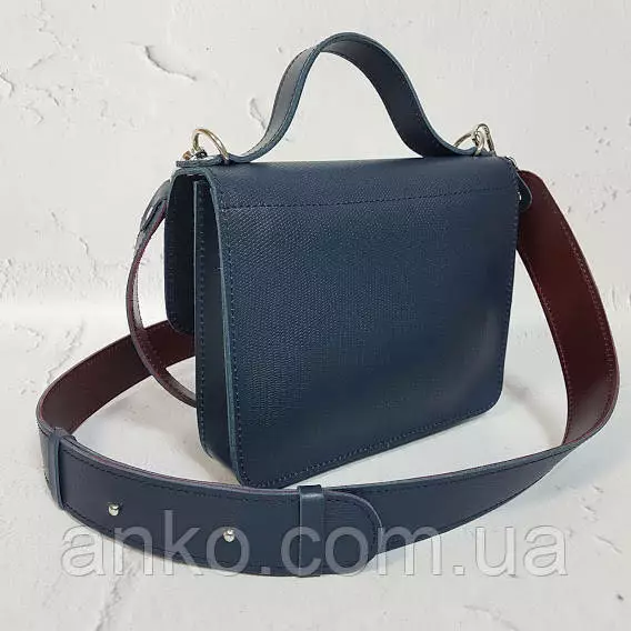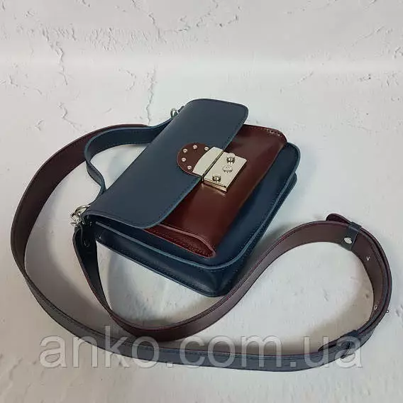 Сумочка закрывается на замок-защелку, имеет два отделения и потайной внутренний карман. Имеется короткая ручка и широкий плечевой ремень на карабинах с регулировкой длины.