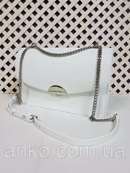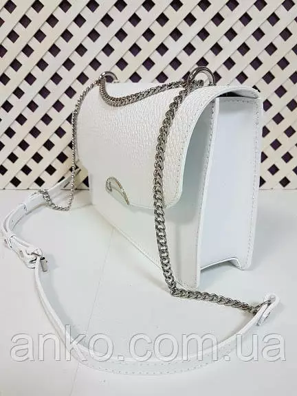 Сумка закрывается на замок-защелку, имеет одно основное отделение, внутри карман на молнии и два открытых кармана. Плечевой ремень регулируется с помощью пряжки и за счет вставки из цепочки, возможно в два раза уменьшить длину ремня.
