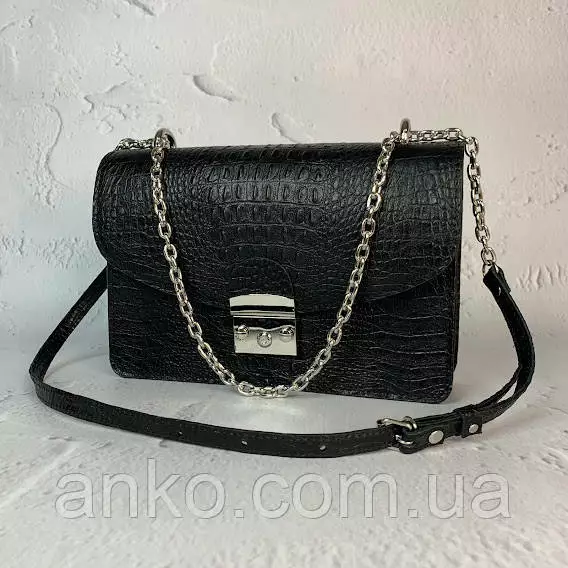 Сумка женская "Богема" натуральная кожа, черная с тиснением под крокодила