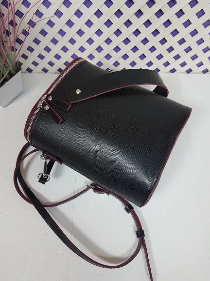 натуральной кожи. Она хорошо держит форму, имеет плечевой ремень с
