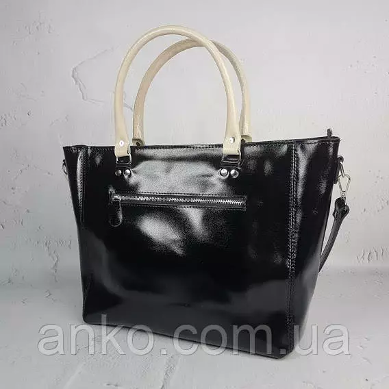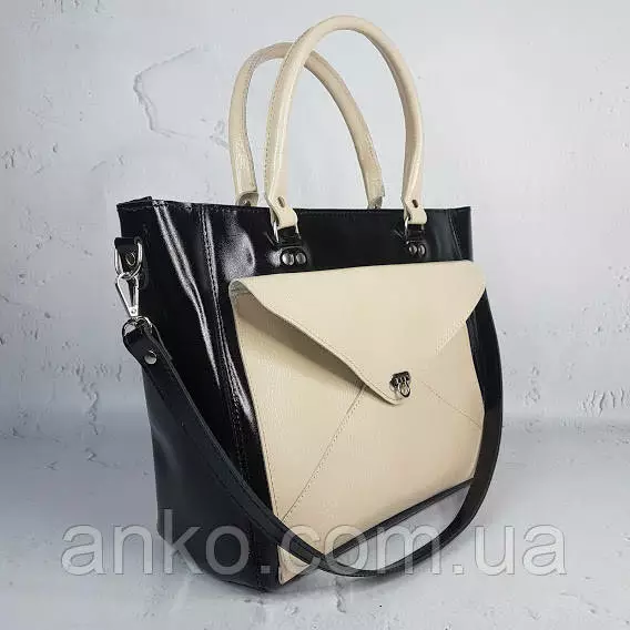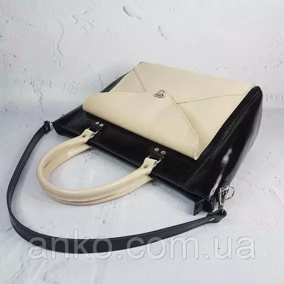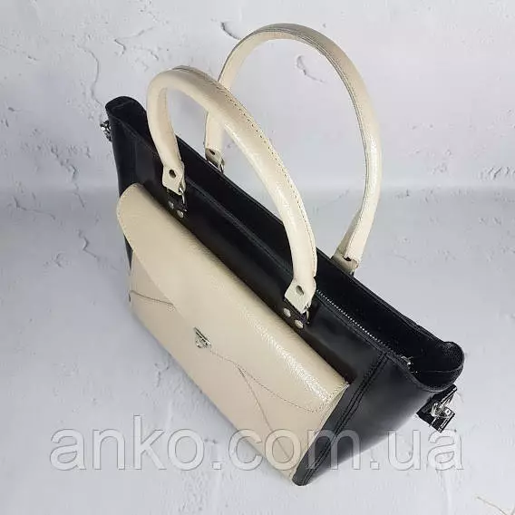 Сумка женская "Бона" натуральная кожа, черная / слоновая кость глянец