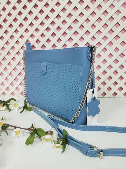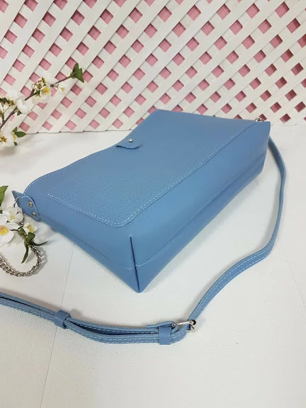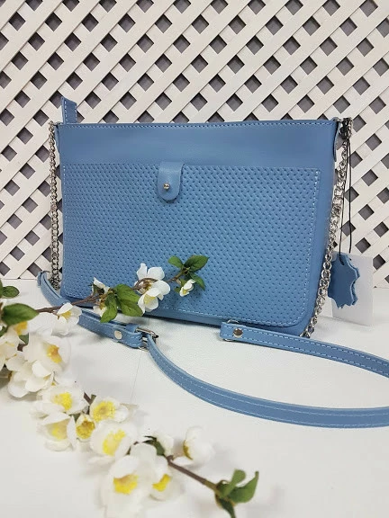 Сумка женская "Деми" натуральная кожа, голубая с плетенкой