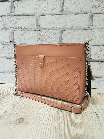 Сумка женская "Деми" натуральная кожа, розовая с плетенкой