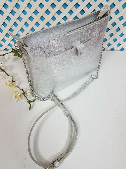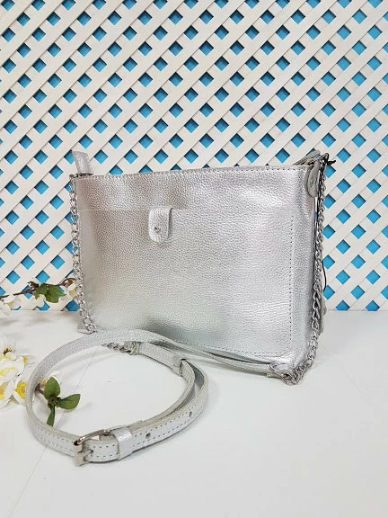 Сумка женская "Деми" натуральная кожа, серебряный флотар