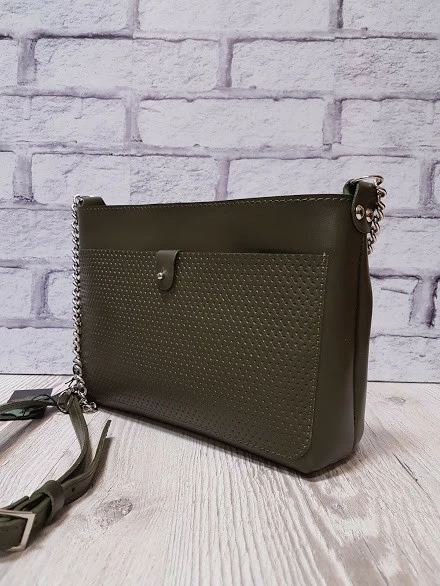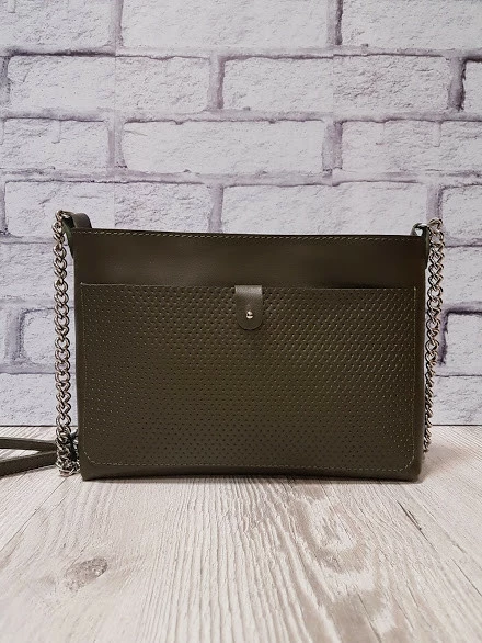 Сумка женская "Деми" натуральная кожа,хаки с плетенкой