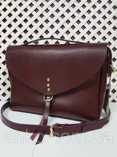 Сумка женская "Дороти" натуральная кожа, бургунди матовая клапан под рептилию