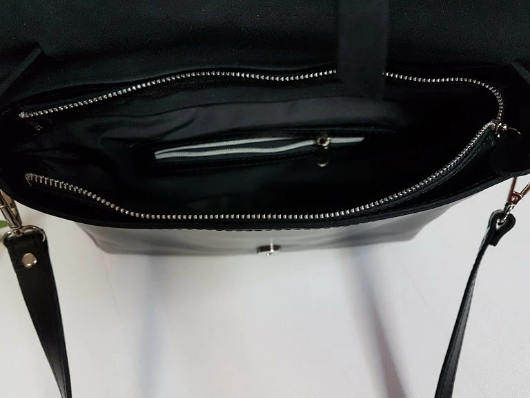 Внутри сумки имеется карман на молнии. Плечевой ремень двойной,
