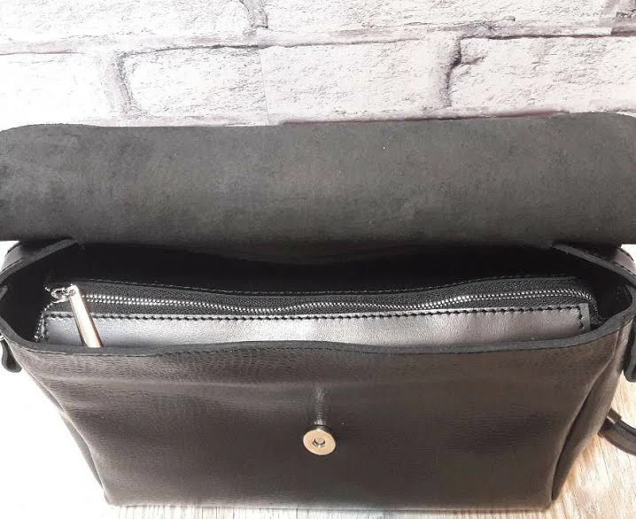Внутри сумки имеется карман на молнии, а также есть карман на